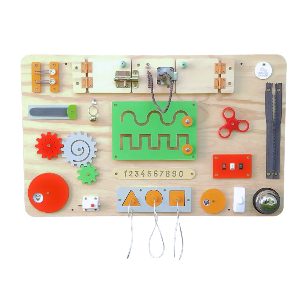 Orden y armonía: Diseñamos nuestros Tableros Sensoriales con un enfoque especial en el orden y la armonía. Cada detalle ha sido cuidadosamente considerado para crear un entorno de juego estéticamente agradable y estimulante. Cada elemento en nuestros tableros se ha colocado estratégicamente para fomentar un flujo de juego natural y estimulante, siguiendo los principios de la metodología Montessori. Cada actividad tiene espacio suficiente entre ellas para un uso y exploración adecuada.