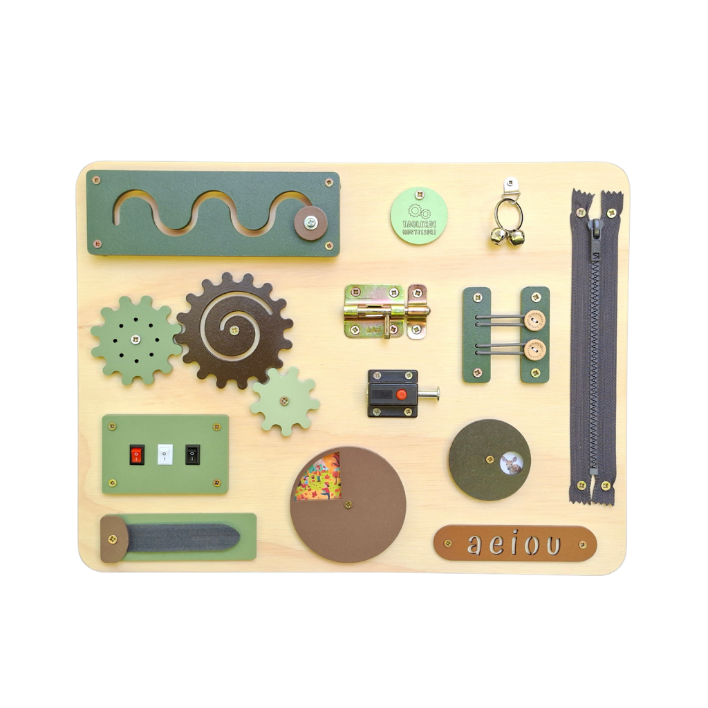 Orden y armonía: Diseñamos nuestros Tableros Sensoriales con un enfoque especial en el orden y la armonía. Cada detalle ha sido cuidadosamente considerado para crear un entorno de juego estéticamente agradable y estimulante. Cada elemento en nuestros tableros se ha colocado estratégicamente para fomentar un flujo de juego natural y estimulante, siguiendo los principios de la metodología Montessori. Cada actividad tiene espacio suficiente entre ellas para un uso y exploración adecuada.